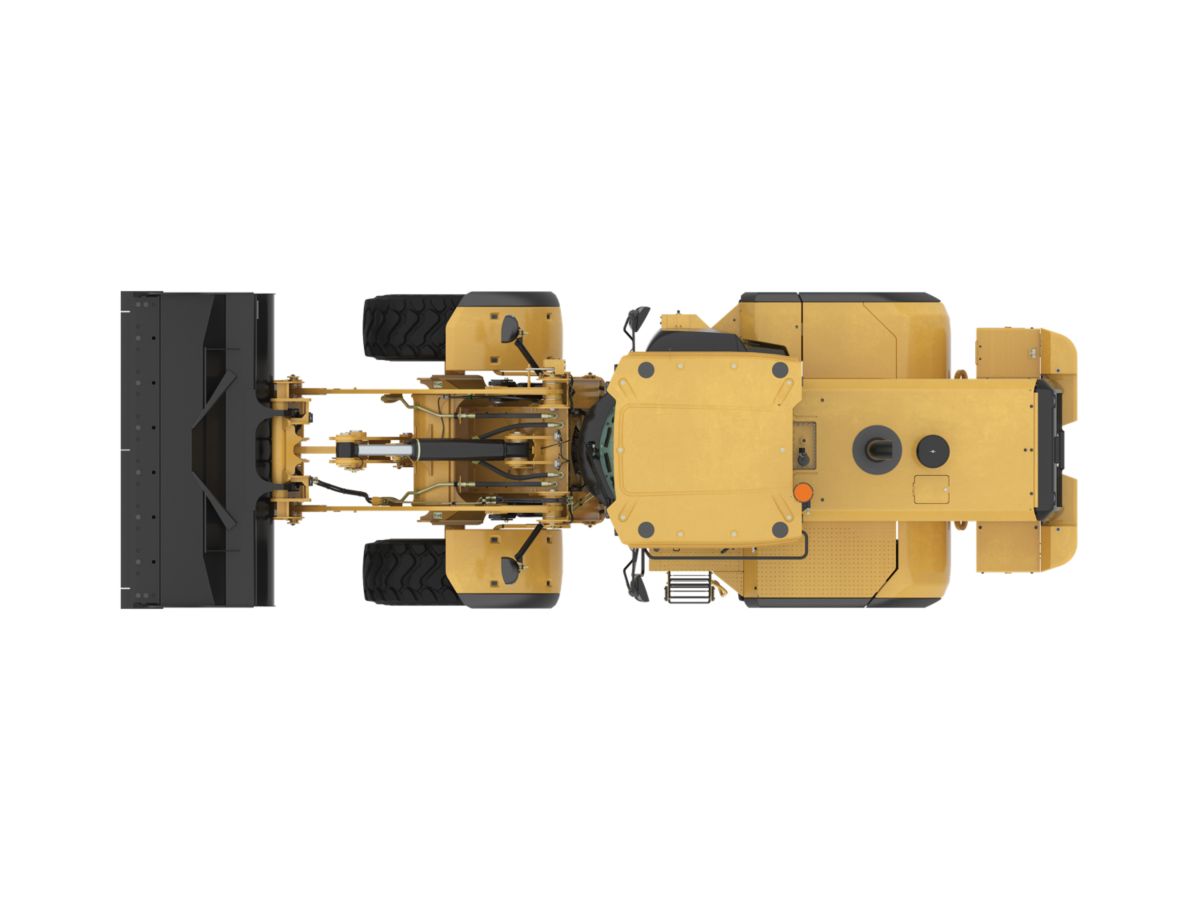 Soyez opérationnel rapidement grâce à l'accès rapide pour l'entretien quotidien des niveaux et à l'éclairage du compartiment moteur en option. Trois grandes portes de visite permettent d'accéder aux filtres et aux points d'entretien. Des intervalles prolongés d'entretien des filtres du groupe motopropulseur et du circuit hydraulique réduisent le temps consacré à l'entretien et optimisent la disponibilité de la machine. Citons parmi les autres fonctions d'entretien : Product Link™ PRO standard avec un abonnement en option à VisionLink®. Rappels d'entretien via l'écran secondaire à intervalles réguliers. Filtre à particules diesel longue durée qui a été conçu pour dépasser la révision générale. Procédez à un entretien rapide du filtre à carburant grâce à la pompe électrique d'amorçage de carburant exclusive de Caterpillar. Des câbles volants fournis de série. Nettoyages approfondis avec le circuit de refroidissement à plan unique et très espacé (6 ailettes par pouce), de série. Lubrification automatique intégrée (en option) avec fréquence de lubrification réglable.