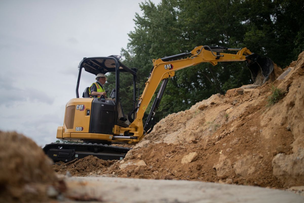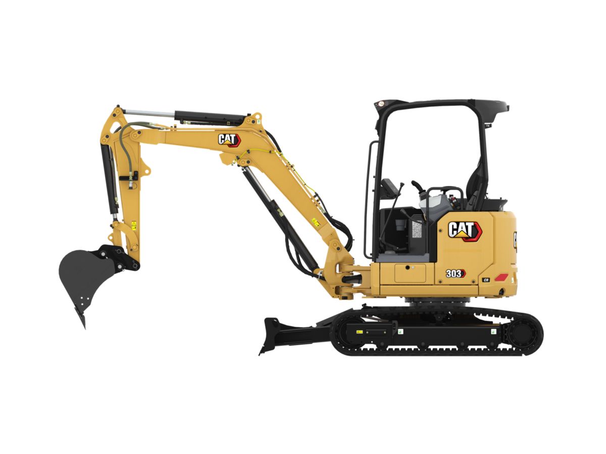 La Minipelle hydraulique 303 CR Cat® de taille compacte fournit une puissance et des performances maximales pour vous permettre de travailler dans une large gamme d'applications.